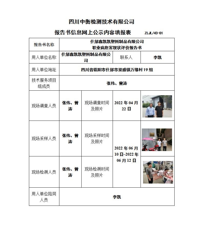 什邡鑫凯凯塑料制品有限公司 职业病危害现状评价