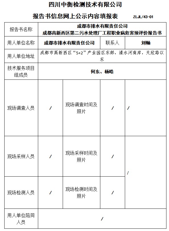成都市排水有限责任公司 成都高新西区第二污水处理厂工程预评价