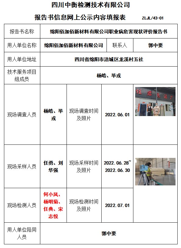 绵阳佰加佰新材料有限公司现状评价