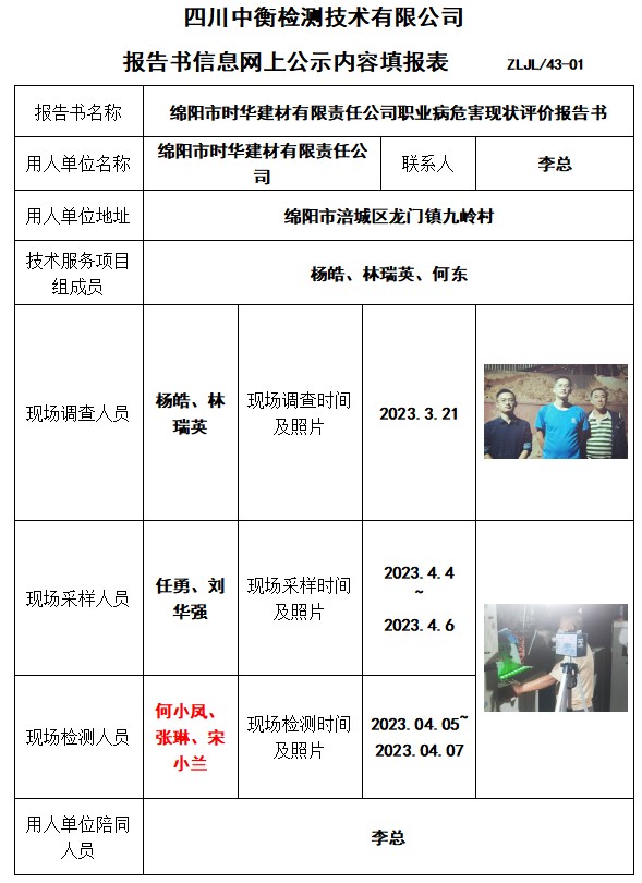 绵阳市时华建材有限责任公司现状评价