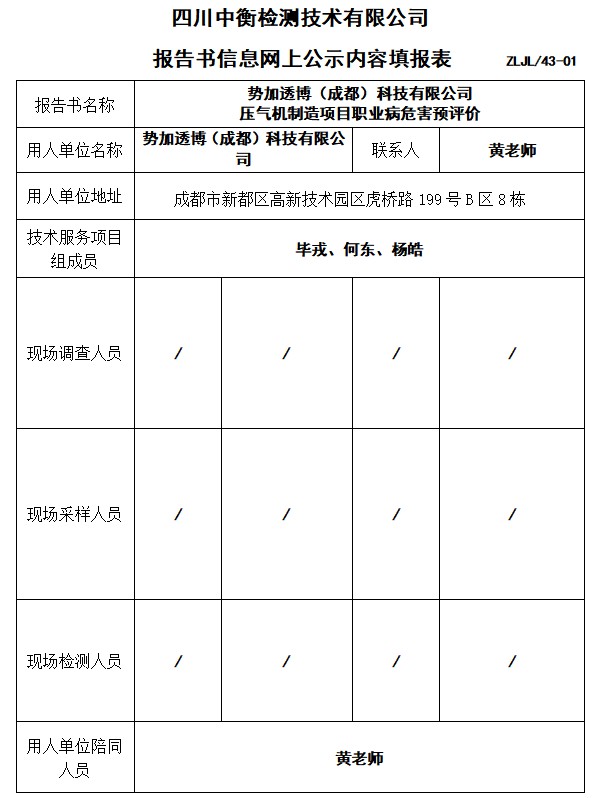 势加透博(成都)科技有限公司 压气机制造项目预评价