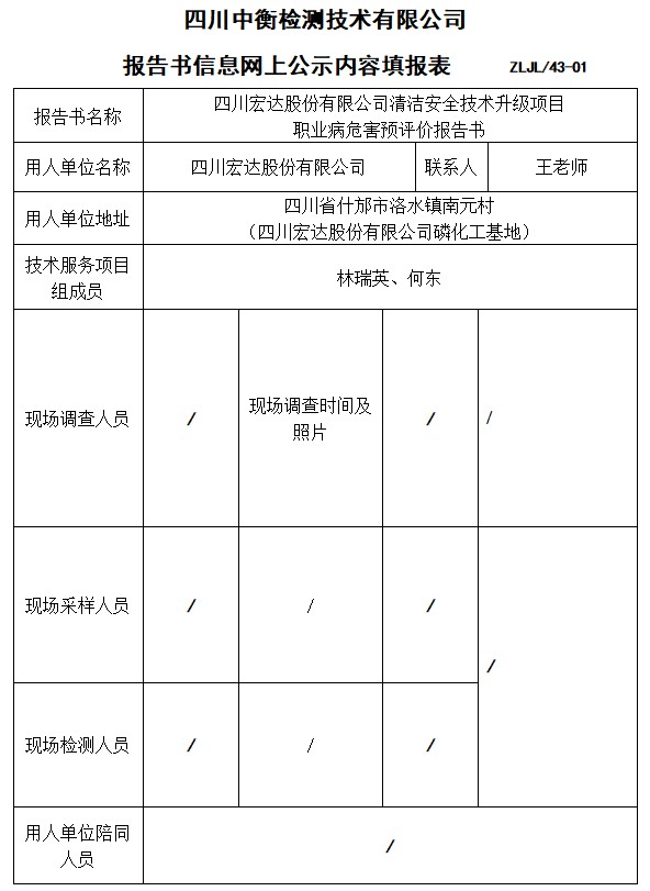 四川宏达股份有限公司清洁安全技术升级项目预评价