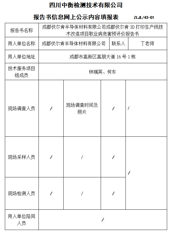 成都伏尔肯半导体材料有限公司成都伏尔肯3D打印生产线技术改造项目预评价