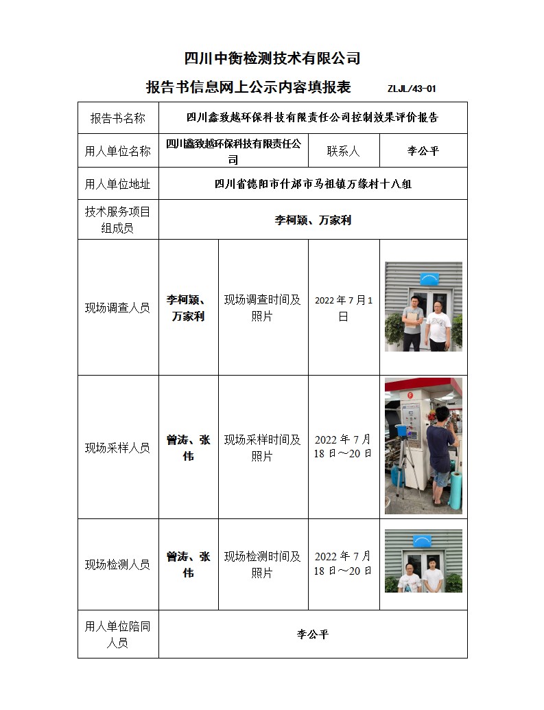 四川鑫致越环保科技有限责任公司 鑫致越环保科技塑料制品加工项目 职业病危害控制效果评价报告书