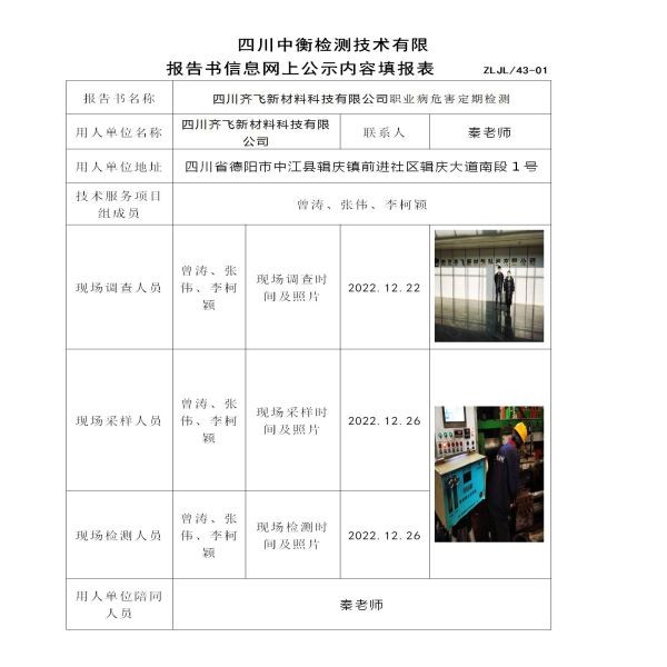 四川齐飞新材料科技有限公司定期检测