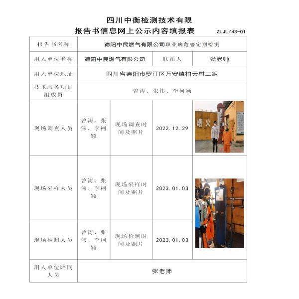 德阳中民燃气有限公司定期检测
