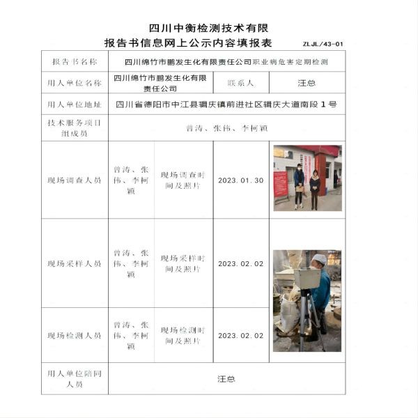 四川绵竹市鹏发生化有限责任公司定期检测
