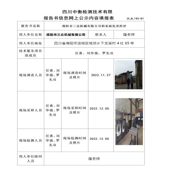 绵阳市三众机械有限公司定期检测