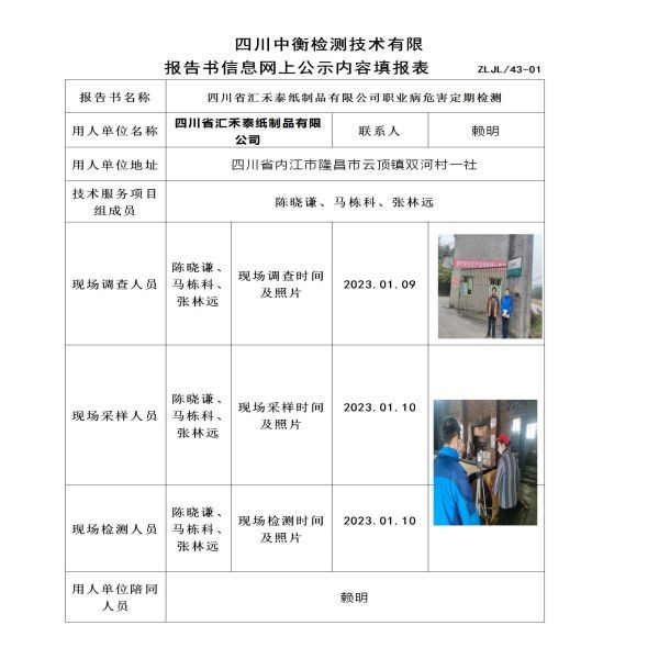 四川省汇禾泰纸制品有限公司定期检测