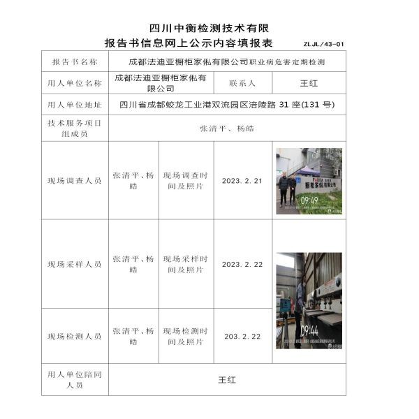 成都法迪亚橱柜家俬有限公司定期检测