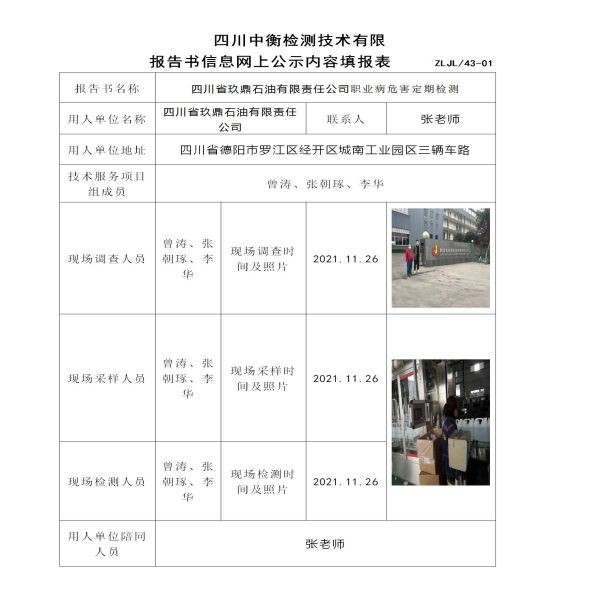 四川省玖鼎石油有限责任公司定期检测