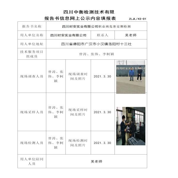 四川时安实业有限公司定期检测