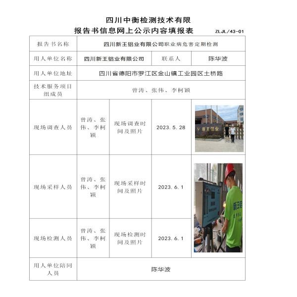 四川新王铝业有限公司定情检测