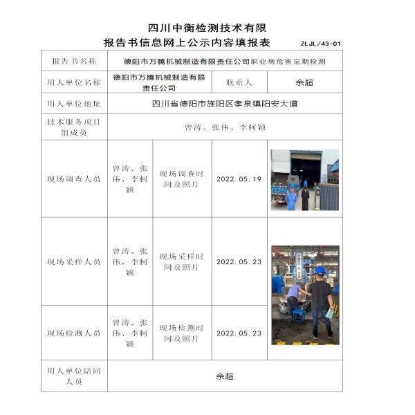 德阳市万腾机械制造有限责任公司职业病危害定期检测
