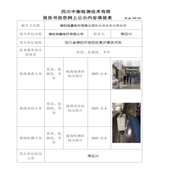 德阳恒嘉电杆有限公司定期检测