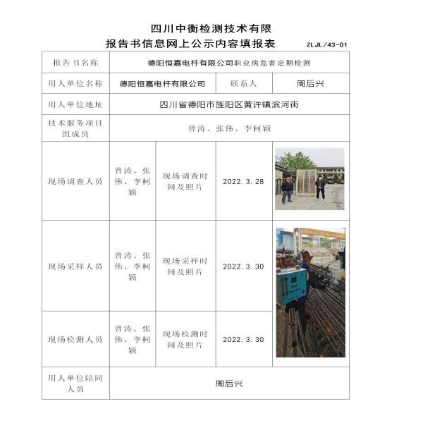 德阳恒嘉电杆有限公司定期检测