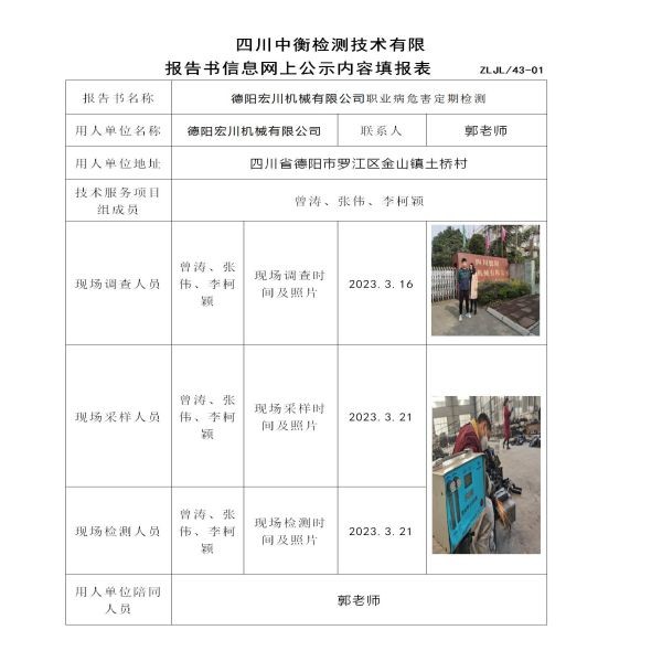 德阳宏川机械有限公司定期检测