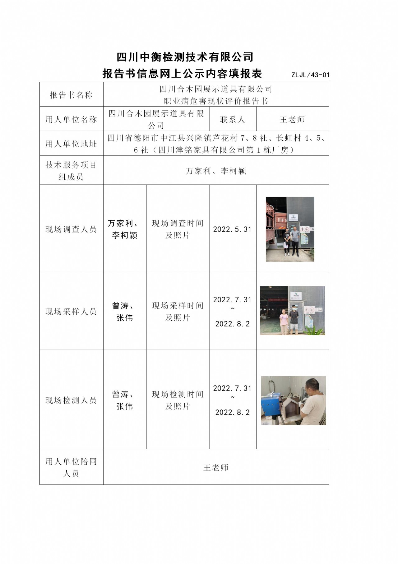 四川合木园展示道具有限公司职业病危害现状评价