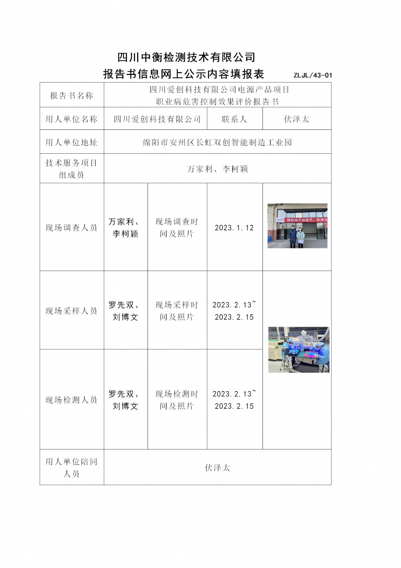 四川爱创科技有限公司电源产品项目 职业病危害控制效果评价