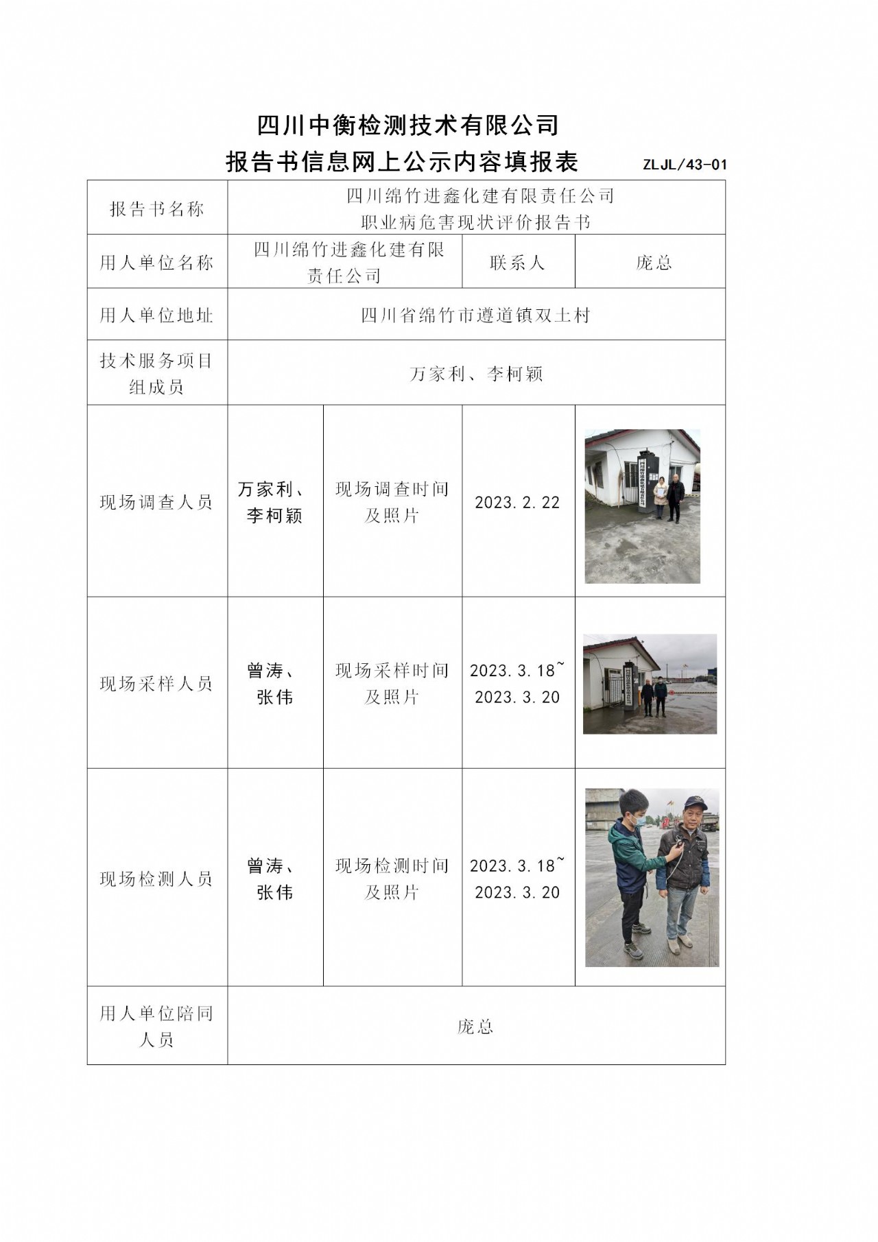 四川绵竹进鑫化建有限责任公司 职业病危害现状评价报告书