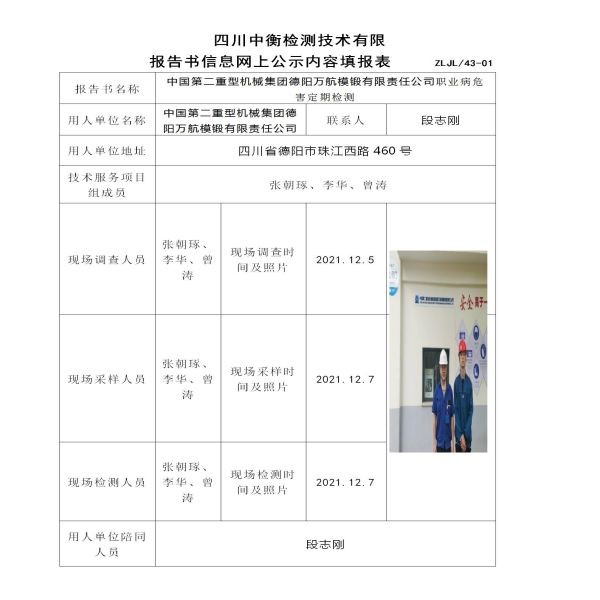 中国第二重型机械集团德阳万航模锻有限责任公司定期检测
