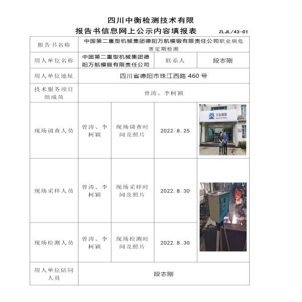 中国第二重型机械集团德阳万航模锻有限责任公司定期检测