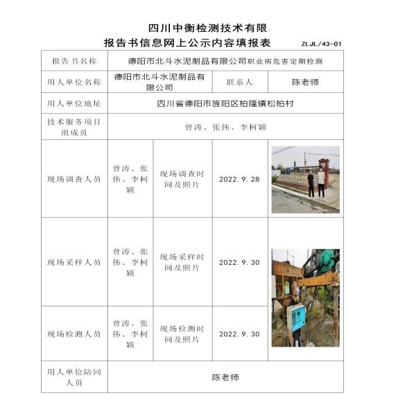 德阳市北斗水泥制品有限公司定期检测