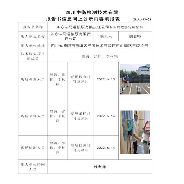 东方法马通核泵有限责任公司定期检测
