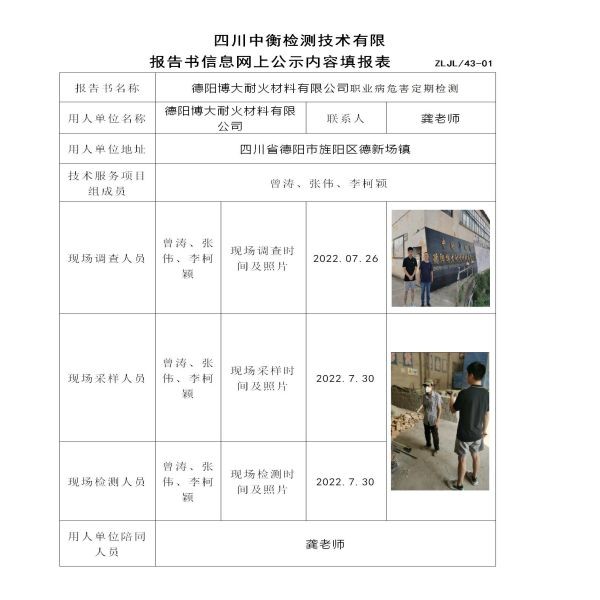 德阳博大耐火材料有限公司定期检测