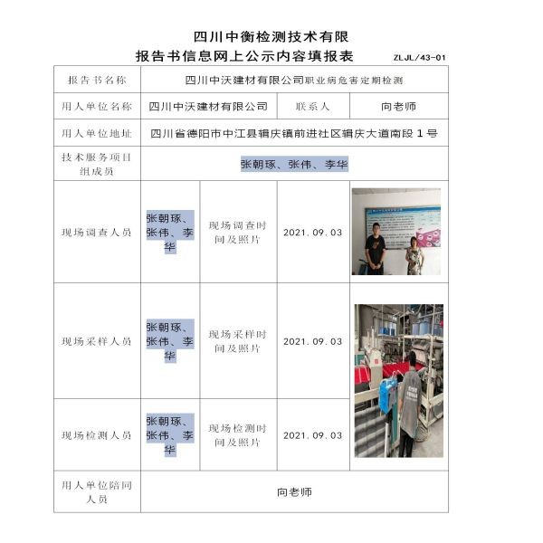 四川中沃建材有限公司定期检测