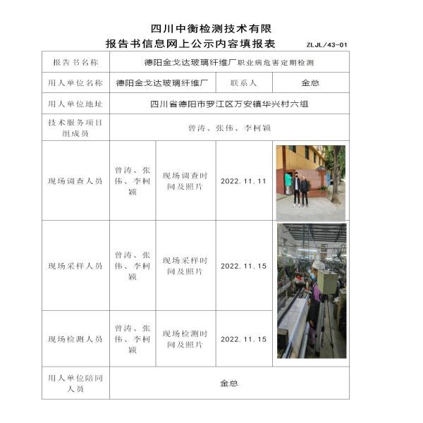 德阳金戈达玻璃纤维厂定期检测