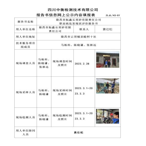 隆昌市拓鑫石英砂有限责任公司职业病危害现状评价