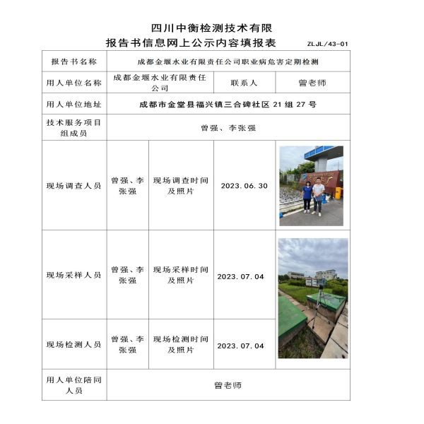 成都金堰水业有限责任公司定期检测