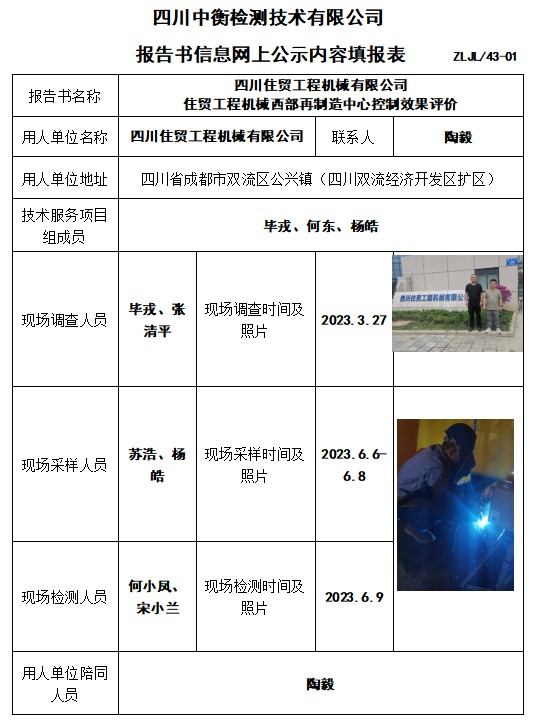四川住贸工程机械有限公司 住贸工程机械西部再制造中心控制效果评价
