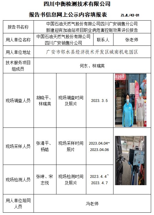 中国石油天然气股份有限公司四川广安销售分公司 新建迎宾加油站项目职业病危害控制效果评价报告