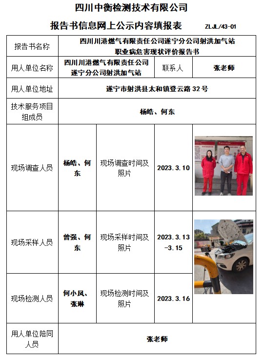 四川川港燃气有限责任公司遂宁分公司射洪加气站 职业病危害现状评价报告书