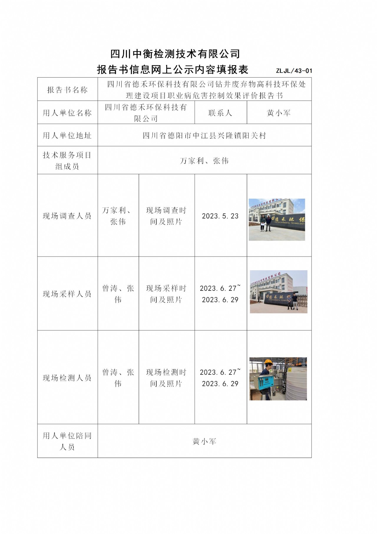 四川省德禾环保科技有限公司钻井废弃物高科技环保处理建设项目职业病危害控制效果评价