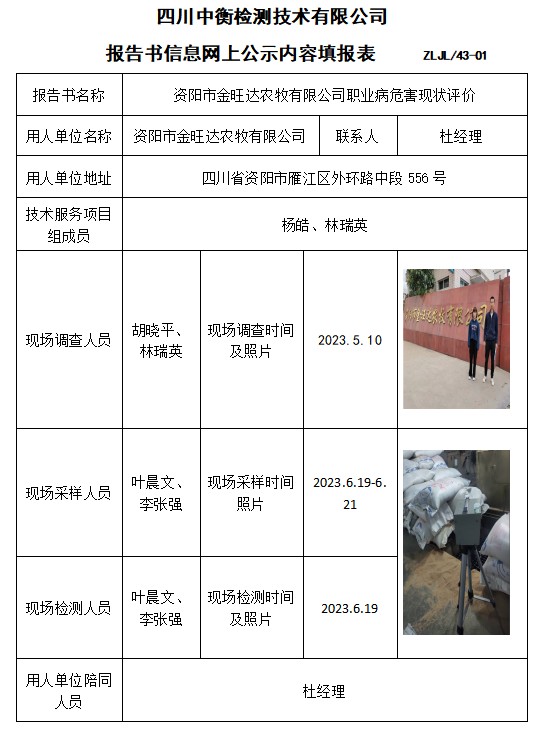 资阳市金旺达农牧有限公司职业病危害现状评价