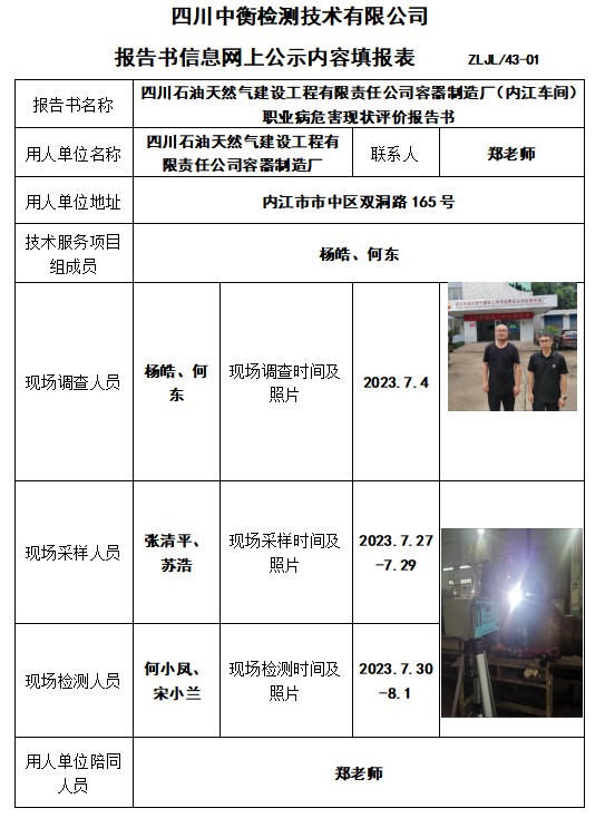 四川石油天然气建设工程有限责任公司容器制造厂(内江车间)职业病危害现状评价报告书