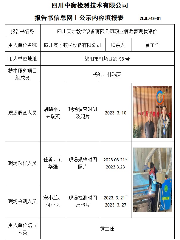 四川英才教学设备有限公司职业病危害现状评价