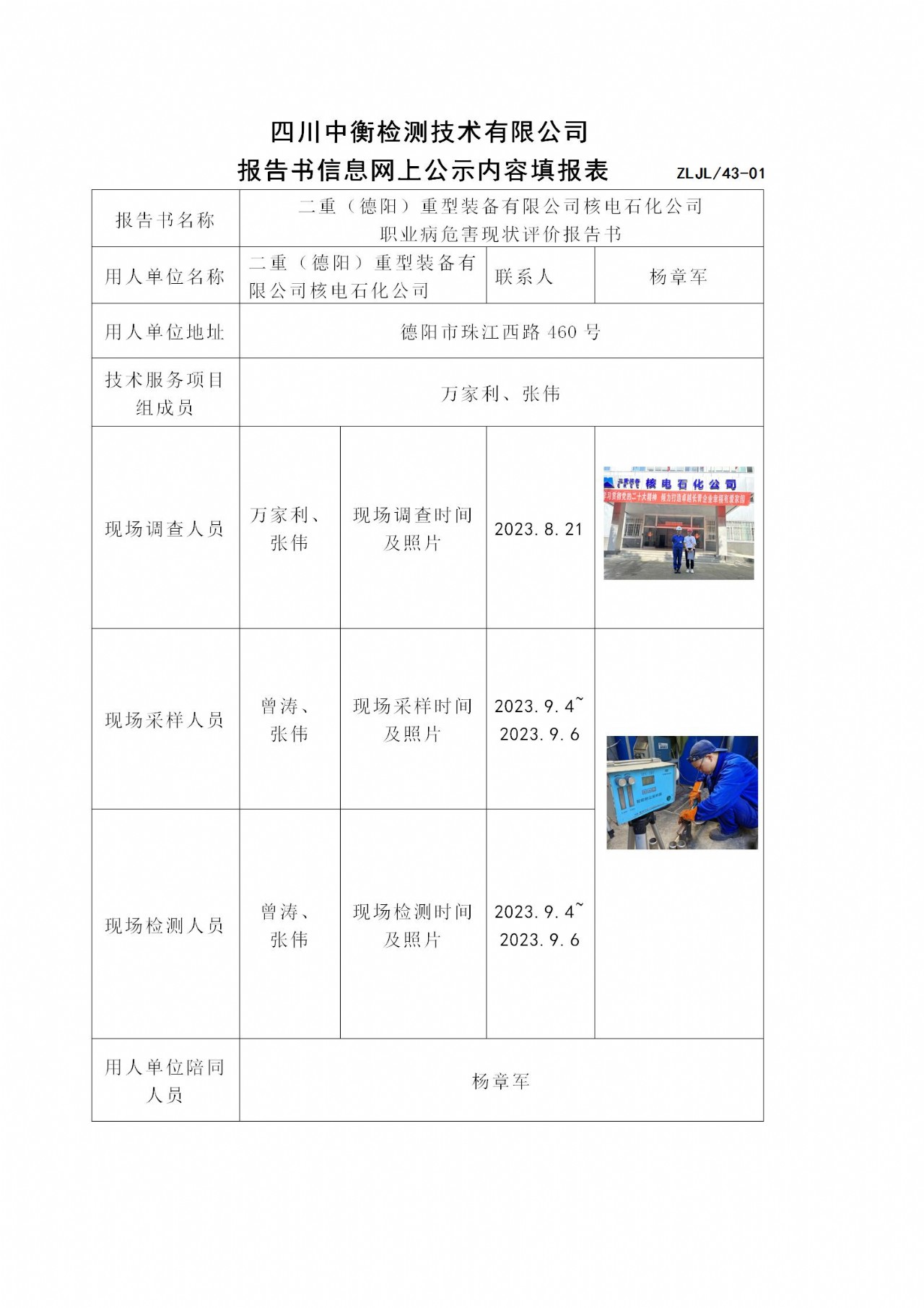 二重(德阳)重型装备有限公司核电石化公司职业病危害现状评价