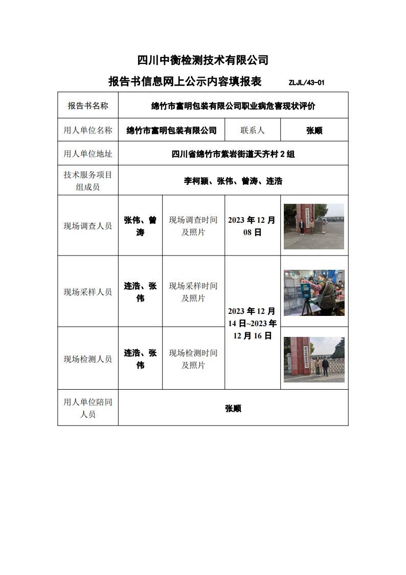 绵竹市富明包装有限公司职业病危害现状评价