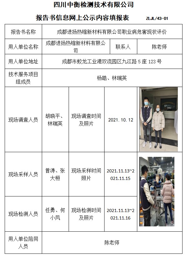 成都进扬热缩新材料有限公司职业病危害现状评价