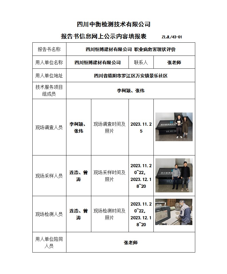 四川恒博建材有限公司 职业病危害现状评价