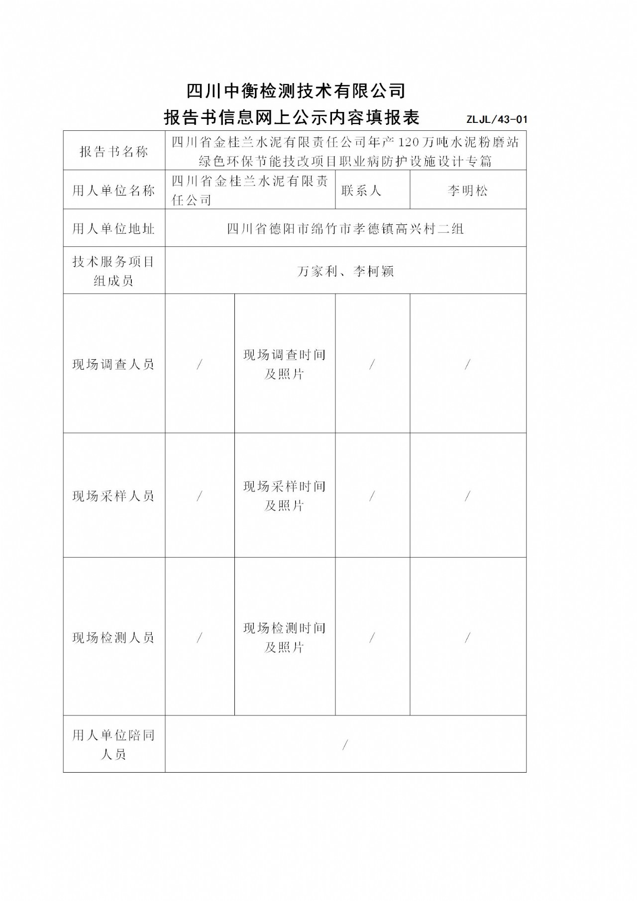 四川省金桂兰水泥有限责任公司年产120万吨水泥粉磨站绿色环保节能技改项目职业病防护设施设计专篇