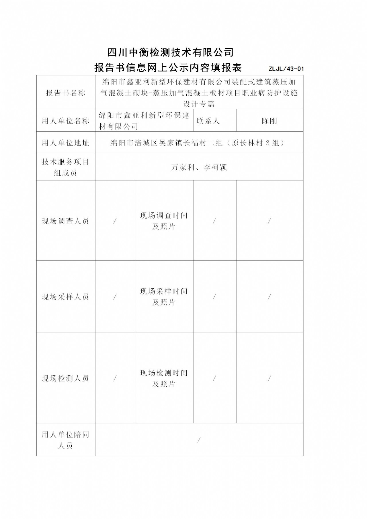 绵阳市鑫亚利新型环保建材有限公司装配式建筑蒸压加气混凝土砌块-蒸压加气混凝土板材项目职业病防护设施设计专篇