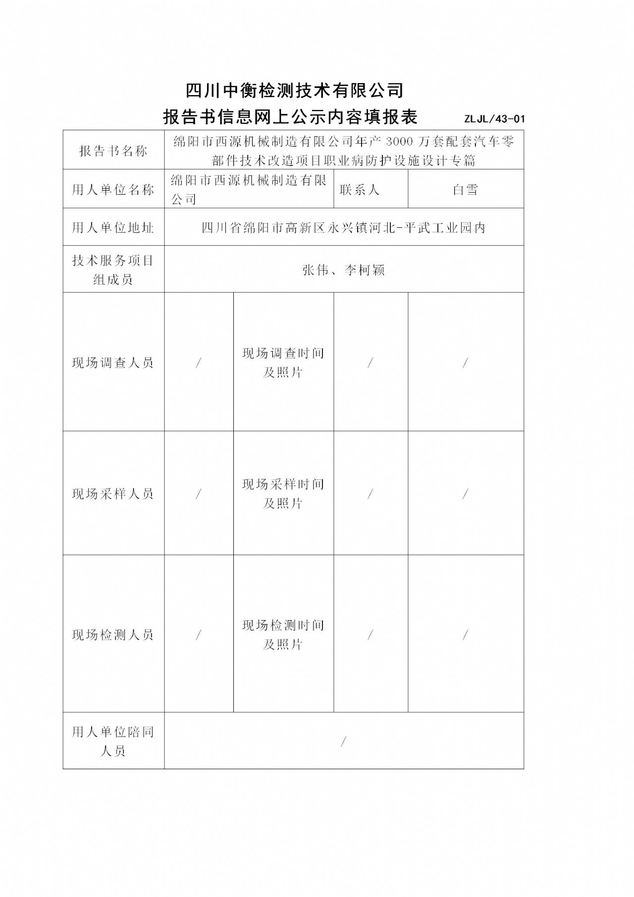 绵阳市西源机械制造有限公司年产3000万套配套汽车零部件技术改造项目职业病防护设施设计专篇