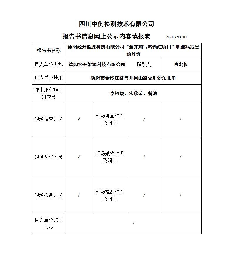 德阳经开能源科技有限公司“金井加气站新建项目”职业病危害预评价