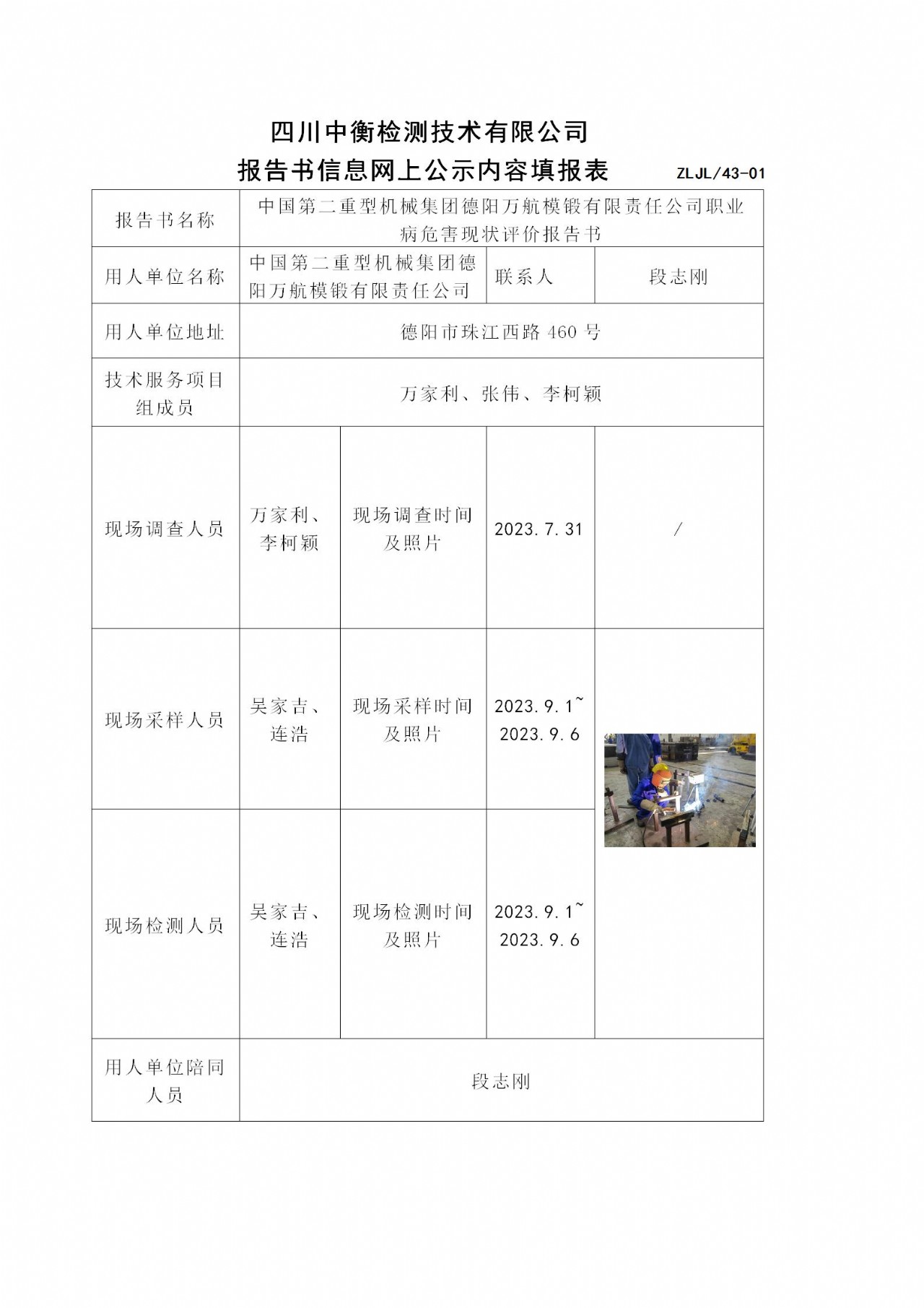中国第二重型机械集团德阳万航模锻有限责任公司职业病危害现状评价报告