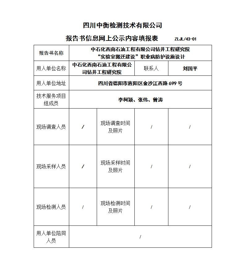 中石化西南石油工程有限公司钻井工程研究院“实验室搬迁建设”职业病防护设施设计